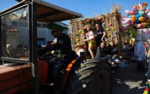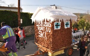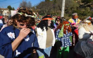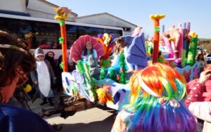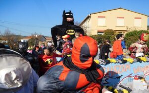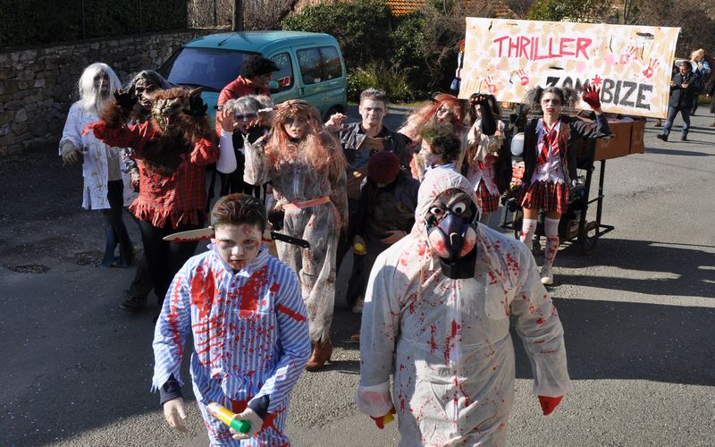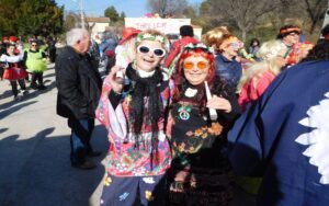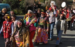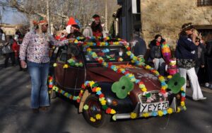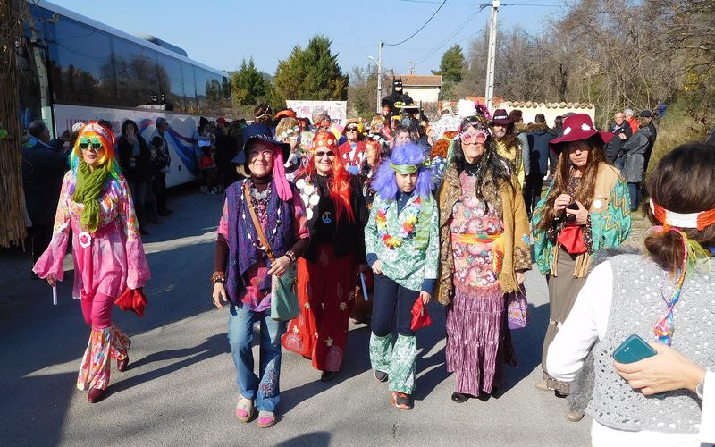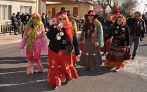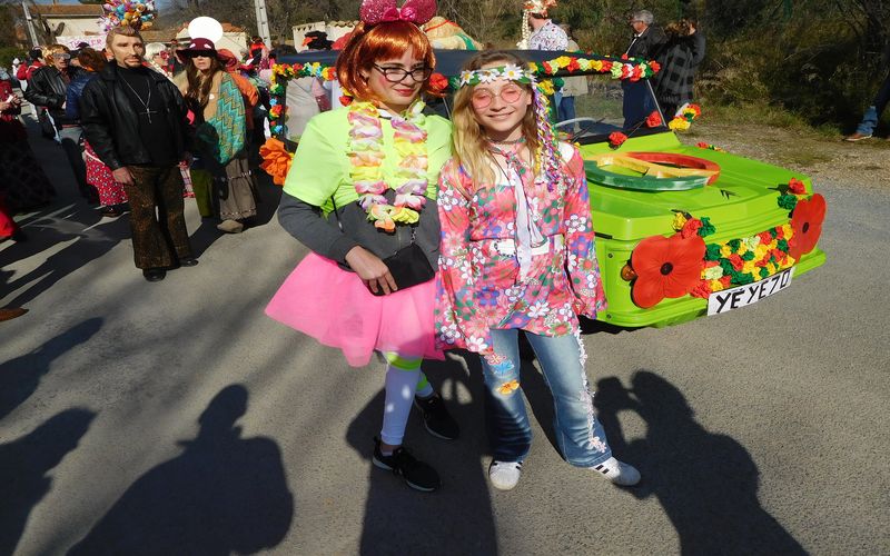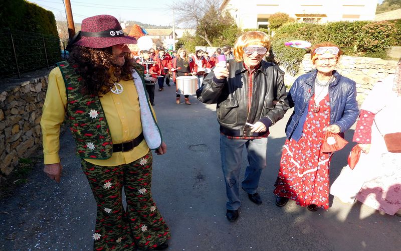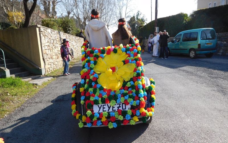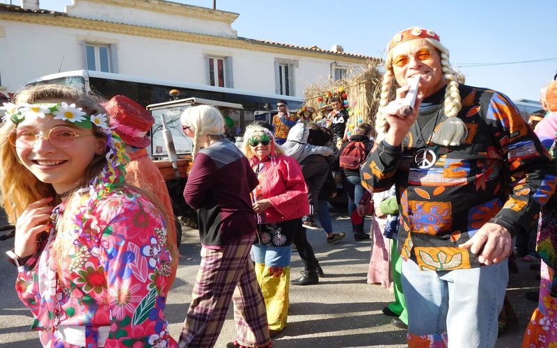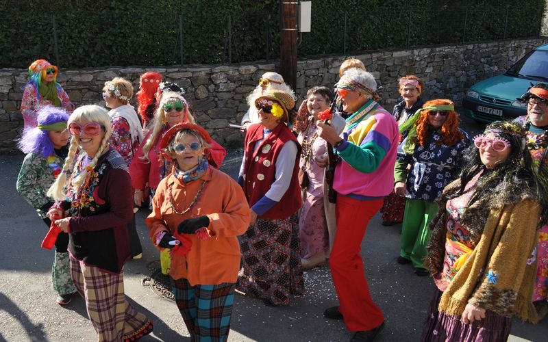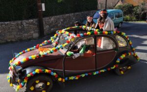 Ciel magnifique cette année pour ce temps fort de la vie bizoise, deux deux-chevaux magnifiques pour encadrer une trentaine de hippies magnifiques des années 70, chemises à fleurs, pantalons pat-d’ef, jupes longues, tignasses et pétards…Sacrée ambiance ! Bravo !.