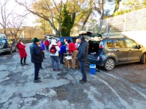 A l’arrivée, ce sont alors les galettes que nos joyeux sportifs avalent ; merci à nos amies pour