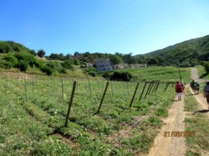 Bien jolie promenade vers l’une des hauteurs de Rieussec. Rieussec ! Quel plaisir de retrouver ce village de l’arrière-pays si tranquille, bien connu des randonneurs. Comme toujours, nous y admirons la nature dans ce décor printanier, arbres, fleurs et potagers environnants. De plus, un temps idéal pour ce premier pique-nique de la saison. Quatre degrés d’écart avec Bize, soit 20° environ, de quoi apprécier autant l’ombre que le soleil ! Nous étions quatorze à lever notre verre de blanquette offert par le club en lui