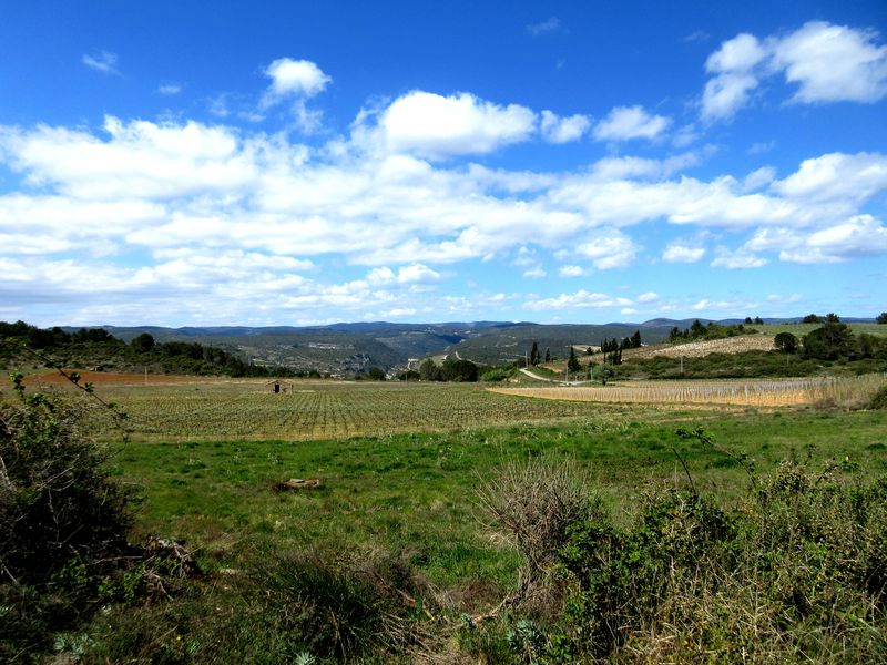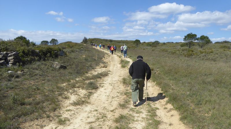 Sur le plateau nous apercevions au sud le lac de Jouarre, l’Alaric et Bugarach. En progressant, nous avons rencontré un père Noël bizois, recruté en fin de période pascale, qui, de son véhicule rouge en guise de traîneau, nous a offert une bien belle surprise. Sur un petit terre-plein, faisant office de point-de-vue, avec une vue exceptionnelle sur la cité de Minerve, nous avons dégusté un flûte de Blanquette pour fêter l’anniversaire de notre amie Elyette. Le retour avec le vent dans le dos fut accompli plus agréablement. Les participants ont tous apprécié ces bien beaux paysages qui s’offraient à eux.