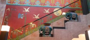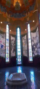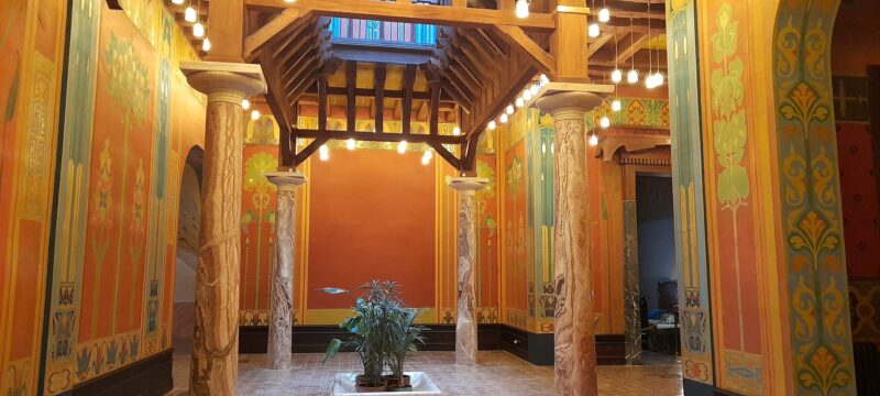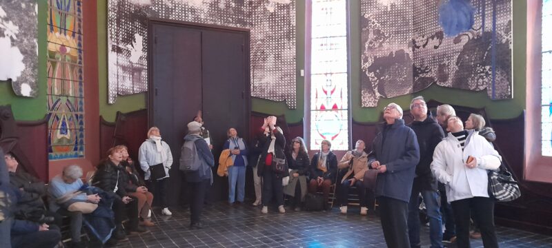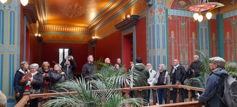 Nous partons en direction du Grau d’Agde. La promenade apéritive, prévue en front de mer est vite écourtée et nous nous réfugions au restaurant « Les Ondines », pour y déguster un très bon repas. Puis après le café, c’est le départ pour Agde et une très intéressante visite guidée du Château Laurens. C’est une superbe propriété érigée à partir de 1898, par un richissime amoureux des techniques et des arts en tous genres, peintures, sculptures, musique, etc. Des pièces immenses claires et bien chauffées selon des normes très modernes, du mobilier, des boiseries superbement décorées style oriental et surtout art nouveau, un salon de musique à l’acoustique très étudiée.