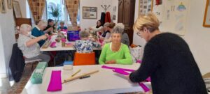 Petite effervescence pendant quelques mercredis après midi , pour confectionner les centaines de fleurs nécessaire à notre char . Plus la confection des costumes. Le tout dans la bonne humeur et nombreux bavardages. Un grand merci aux petites mains présentes . Pour finir boissons chaudes et gâteaux !!!