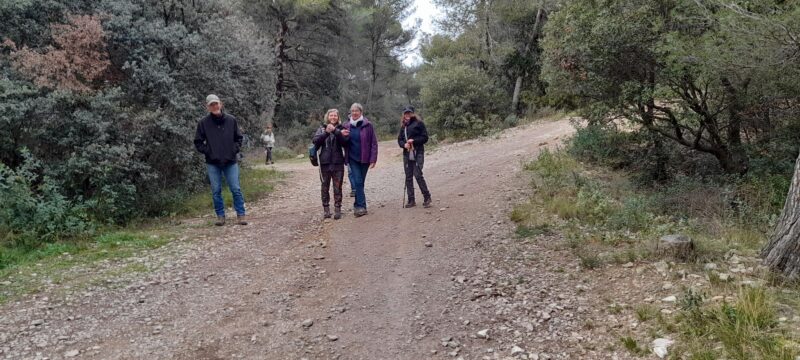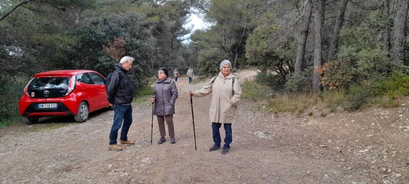 Encore un mardi bien morose , mais malgré un fort vent , quelques fidèles du mardi on répondu présents . Nous étions 13 . Récompensés par un petit gouter , protégés sous les pins.
