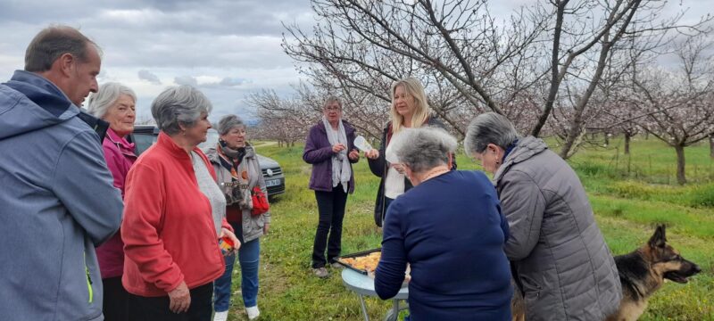 Balade printanière et gouter autour des fruitiers en fleurs .