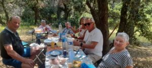 Pour cette reprise marche du matin , dommage pour les absents absentes ; avec un temps estival , nous avons découvert un merveilleux endroit . Chemins à travers vignoble , chemins des capitelles en tous genres , pique nique à l’ombre des arbres qui bordent la chapelle . Et pour finir , à la demande de Nicole , nous avons eu le plaisir d’avoir une visite commentée de cette belle chapelle du moyen age . Nous remercions notre guide du jour Nicole qui nous a proposé cette marche .