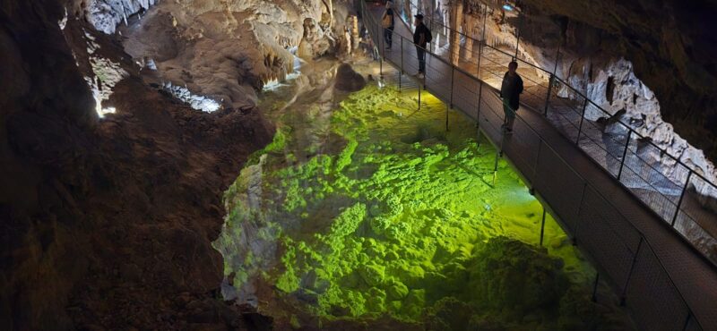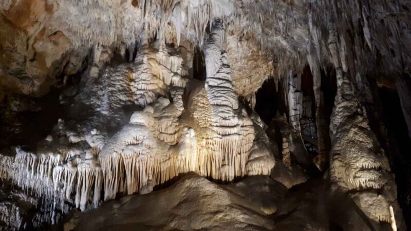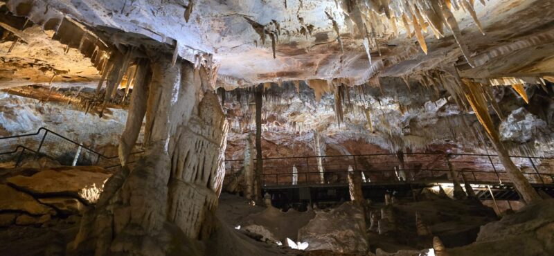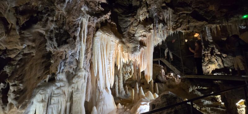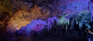 Rendez-vous à 8H au champ de foire pour un départ sous un ciel voilé, en direction de Villefranche de Conflent, pour la visite des grottes de Canalettes, surnommé « le Versailles souterrain des Pyrénées ».Découvertes par hasard en 1851, elles seront ouvertes au public en 1982, après de gros travaux d’aménagement. La visite nous offre une suite ininterrompue d’édifices naturels aux volumes insolites et gigantesques.