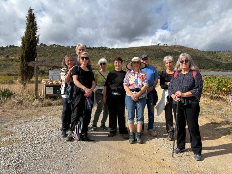 11 Présents pour un départ du foirail vers le pech et dans les vignes d’Argeliers . 6km500 pour tout le monde . Encore un temps chaud pour cette sortie .