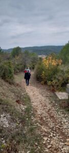 En ce jour de 11 novembre , le matin belle cérémonie devant monument aux morts sous un magnifique soleil . Mais hélas , changement radical pour l’après midi . Cela ne nous a pas découragé . Nous étions 14 motivés ce jour férié . Marche unique , départ du foirail vers les jardins , chemin de Compostelle pour monter vers le pech , retour versant Bize pour encore admirer notre village et descente par le chemin de Cacot , Sentier également remis en état , murs remontés en pierres sèches et débroussaillage par la dynamique association Bize Patrimoine .